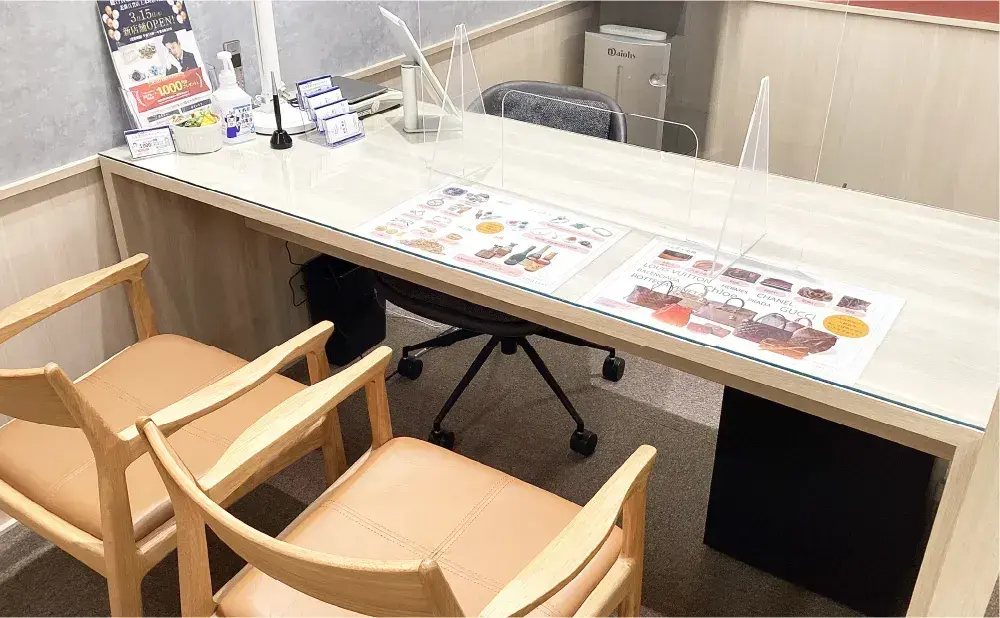 - 感染対策が万全なことはもちろん、査定中は落ち着ける店内で快適にお過ごしいただけます。また、受付システムにより待ち時間は百貨店内でのショッピングをお楽しみいただけます。