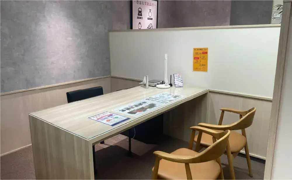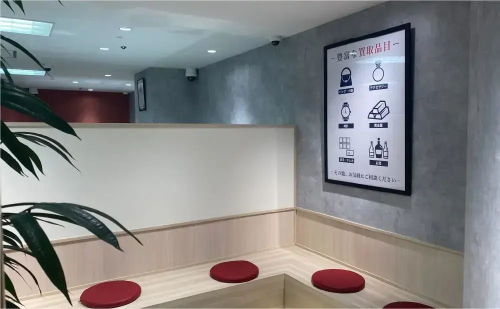 - 感染対策が万全なことはもちろん、査定中は落ち着ける店内で快適にお過ごしいただけます。また、受付システムにより待ち時間は百貨店内でのショッピングをお楽しみいただけます。